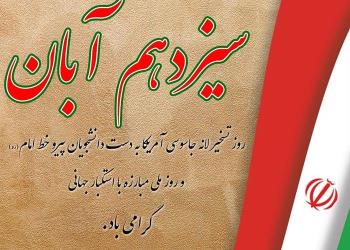 یوم الله 13 آبان گرامی باد روز سیزدهم آبان در تقویم کشورمان یادآور سه رویداد تاریخی و ماندگار است که هر یک نماد ایستادگی ملت ایران در برابر ظلم، استبداد و استکبار جهانی است و این روز به عنوان «روز دانشآموز» و «روز ملی مبارزه با استکبار جهانی» نامگذاری شده است. یوم الله 13 ابان گرامی باد |