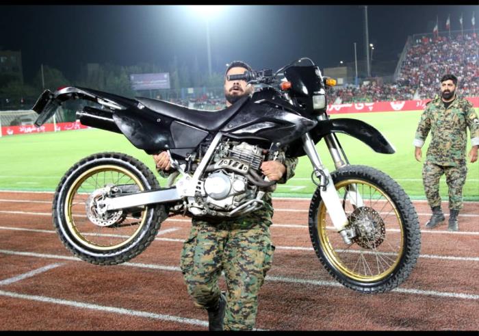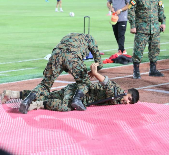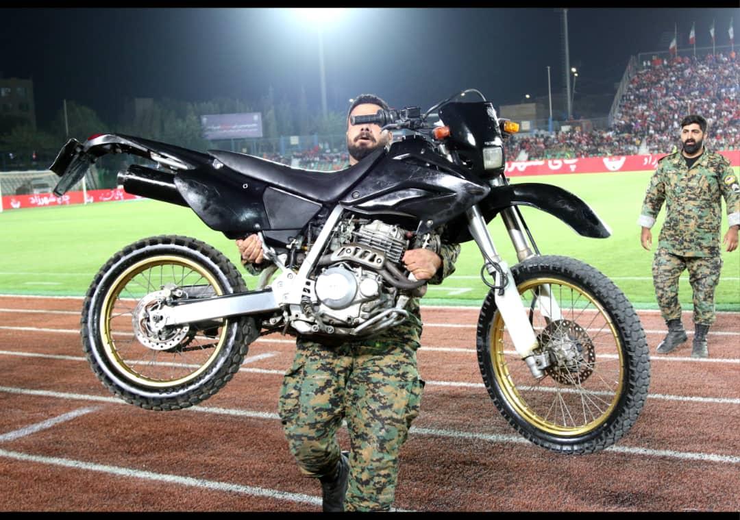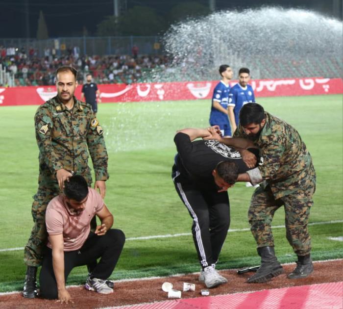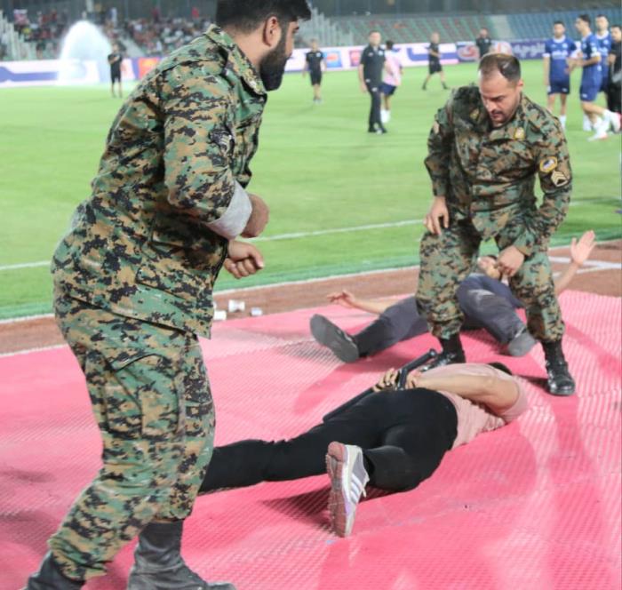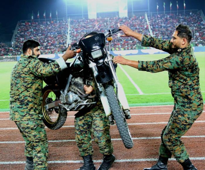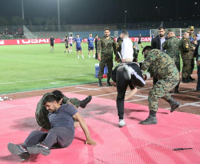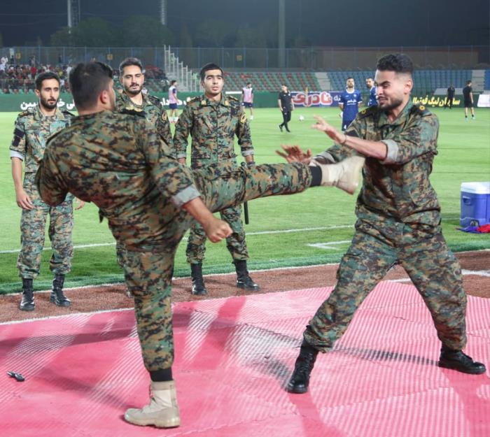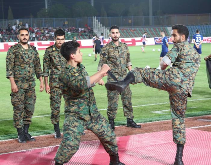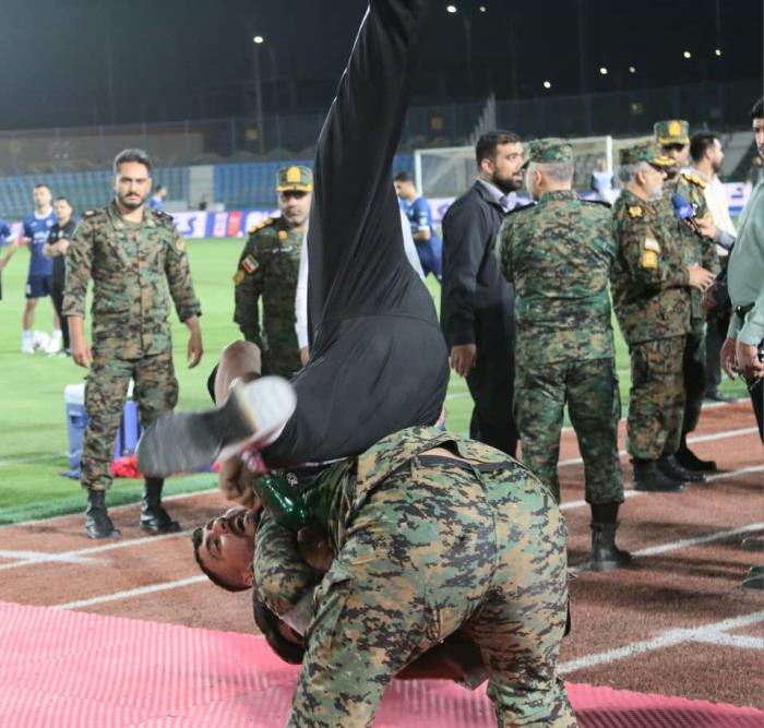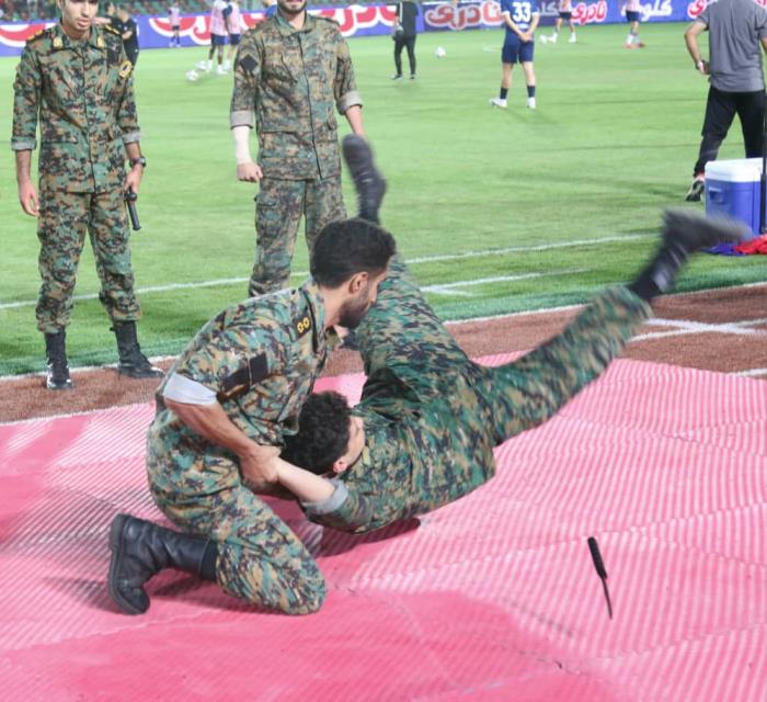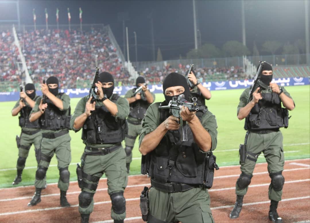 ماموران یگان ویژه به مناسبت هفته نیروی انتظامی در دیدار پرسپولیس و گل گهر سیرجان حرکات نمایشی اجرا کردند. عکس علی فرهاد کیایی